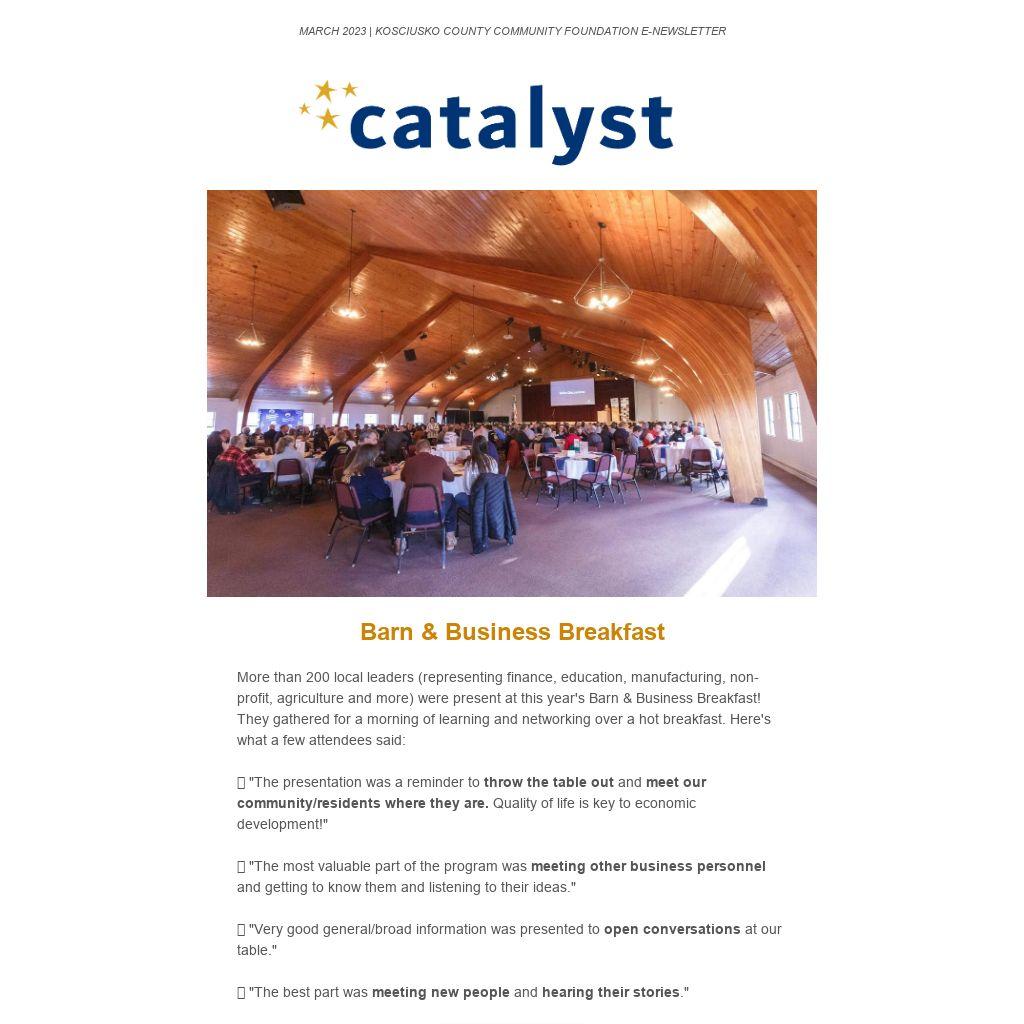More than 200 local leaders (representing finance, education, manufacturing, non-profit, agriculture and more) were present at this year's Barn & Business Breakfast! They gathered for a morning of learning and networking over a hot breakfast. Here's what a few attendees said: