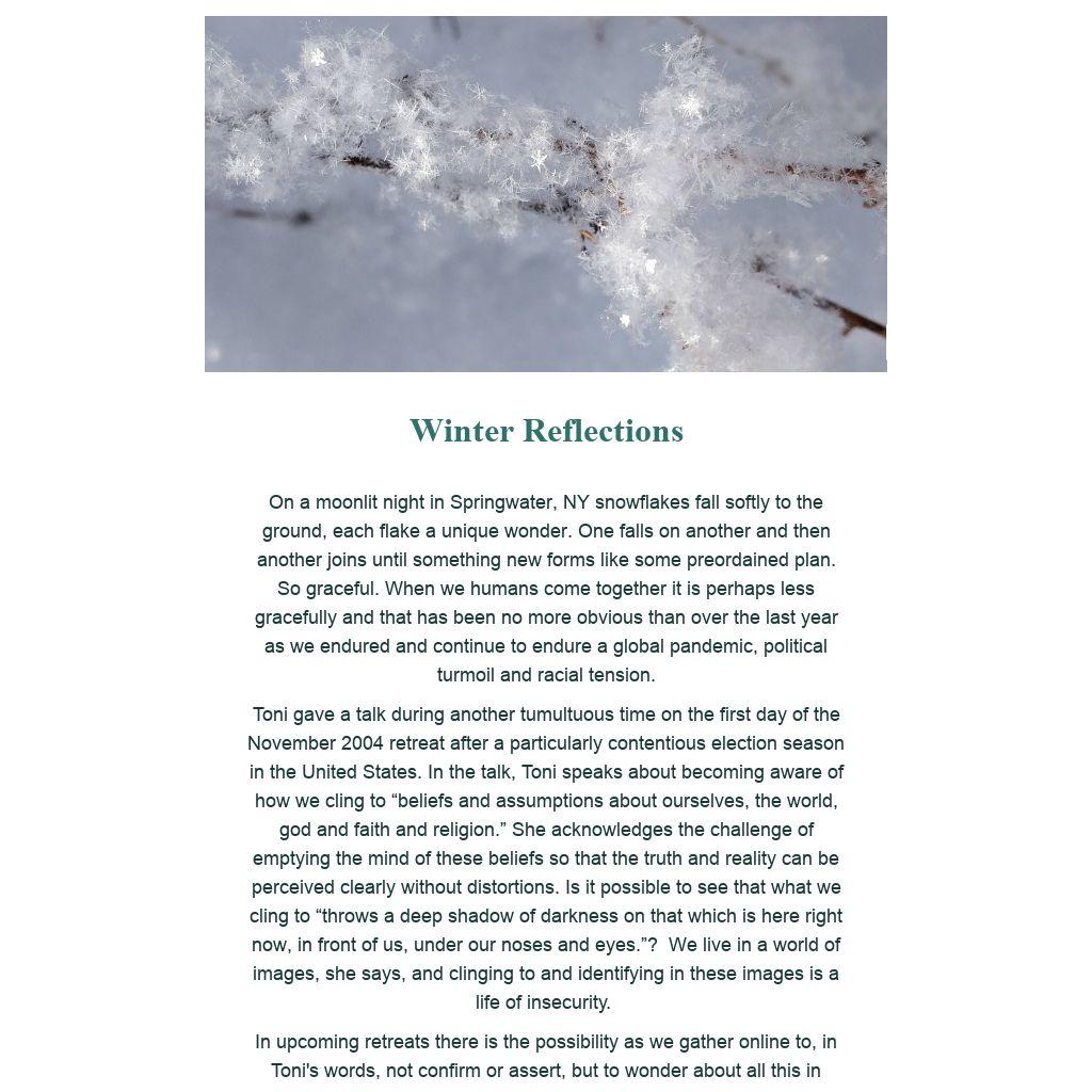 In upcoming retreats there is the possibility as we gather online to, in Toni's words, not confirm or assert, but to wonder about all this in openness.