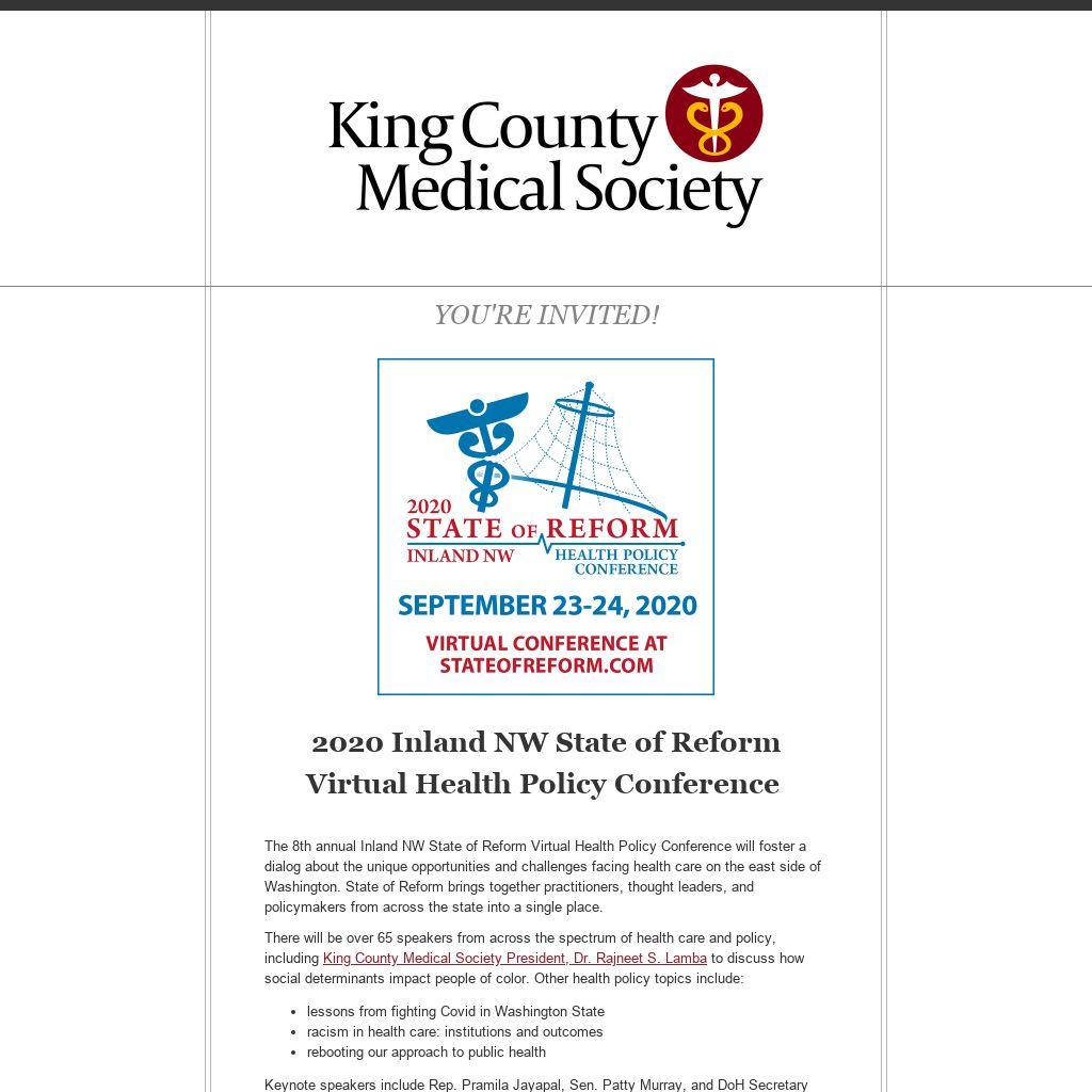 The 8th annual Inland NW State of Reform Virtual Health Policy Conference will foster a dialog about the unique opportunities and challenges facing health care on the east side of Washington. State of Reform brings together practitioners, thought leaders, and policymakers from across the state into a single place.