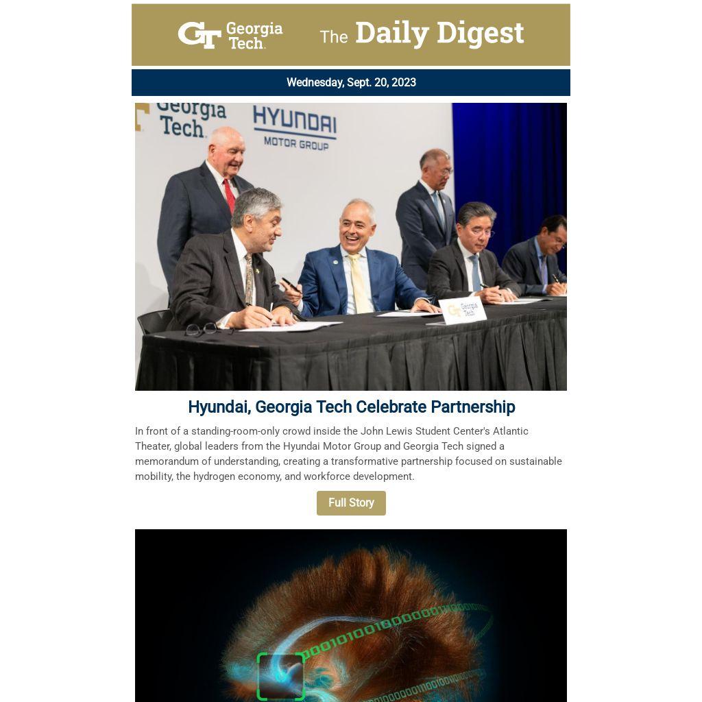 In front of a standing-room-only crowd inside the John Lewis Student Center's Atlantic Theater, global leaders from the Hyundai Motor Group and Georgia Tech signed a memorandum of understanding, creating a transformative partnership focused on sustainable mobility, the hydrogen economy, and workforce development.