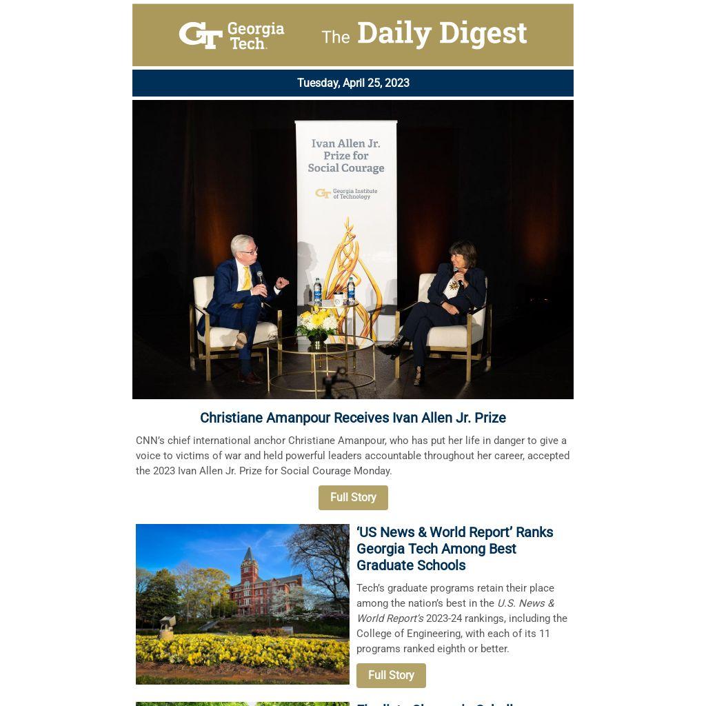 | Tech’s graduate programs retain their place among the nation’s best in the U.S. News & World Report’s 2023-24 rankings, including the College of Engineering, with each of its 11 programs ranked eighth or better.