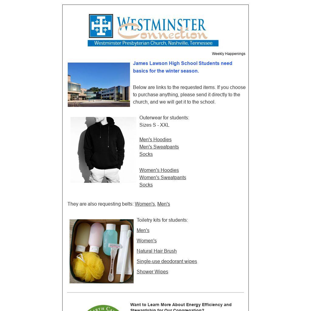 -- Learn how to care for creation, lessen our congregation’s carbon footprint, and lower our utility bills by adopting energy efficiency measures and exercising clean energy options.