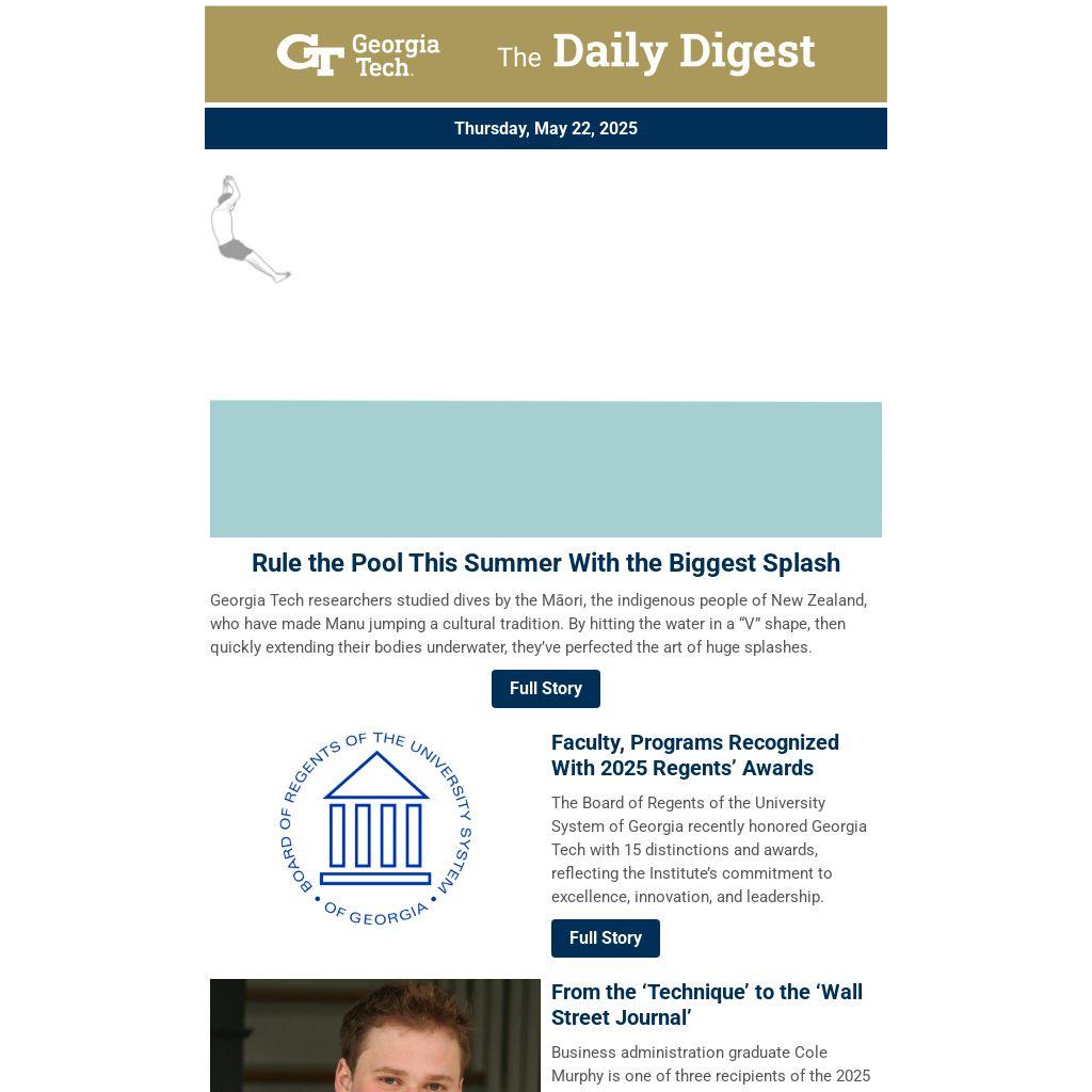 The Board of Regents of the University System of Georgia recently honored Georgia Tech with 15 distinctions and awards, reflecting the Institute’s commitment to excellence, innovation, and leadership.