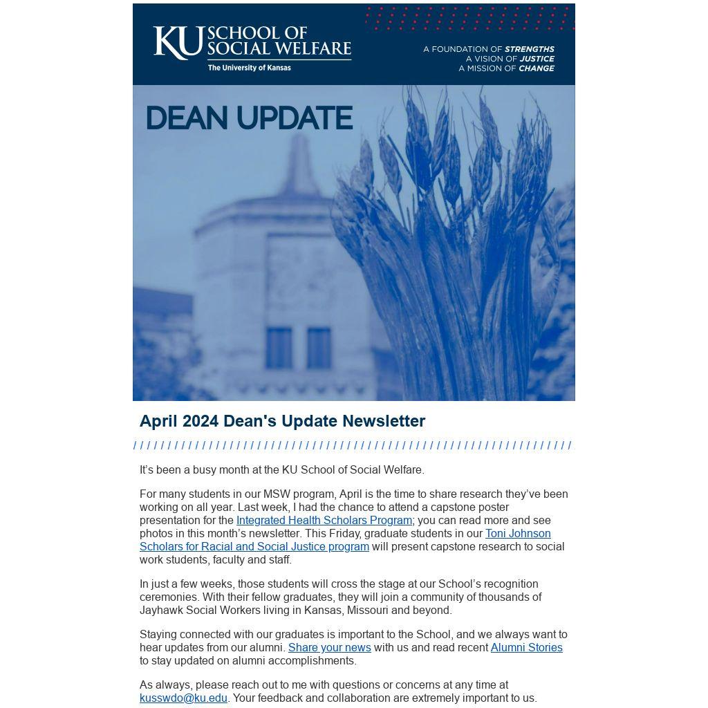 As always, please reach out to me with questions or concerns at any time at kusswdo@ku.edu. Your feedback and collaboration are extremely important to us.